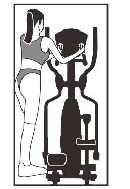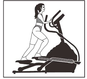 Get on: Ensure the left foot pedal is in the lowest position and grasp the stationary handlebars with both hands. Place your left foot on the left foot pedal and then lift your right foot over machine and place on right foot pedal. Get balanced and begin your workout.