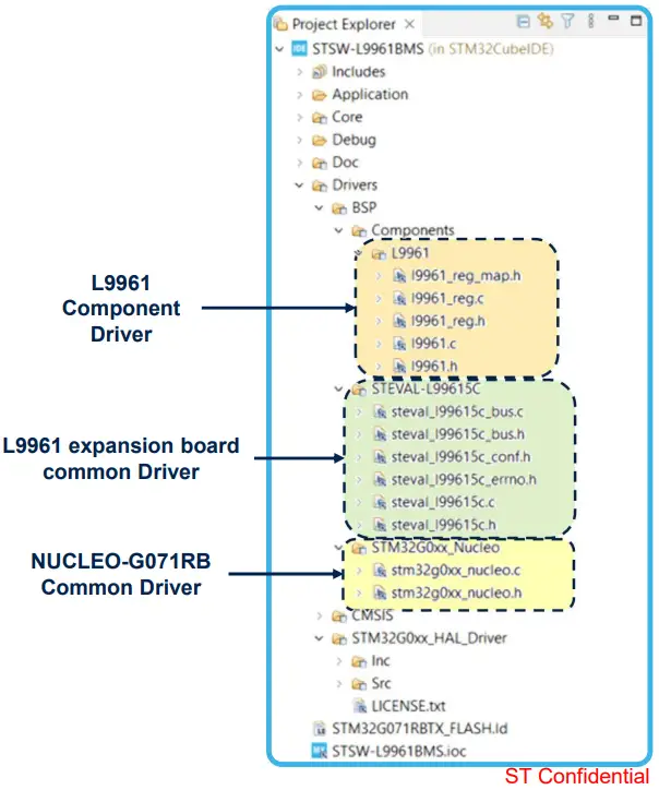 - STSW-L9961BMS (* ) SW package, containing source code and binaries, with standalone FW driver and application examples