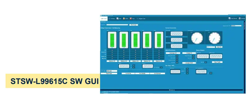 - STSW-L99615C (* ) SW GUI uses the PC serial communication to interface with the STM32 microcontroller and L9961