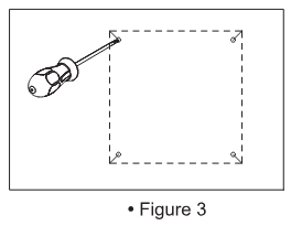 Step 3: Using a plasterboard saw or awl, poke through the corners of the cut, keeping the tool straight through the back of the drywall. Repeat this step at each corner. (See Figure 3)