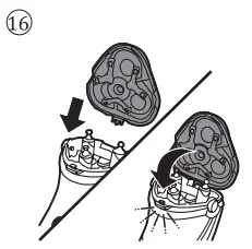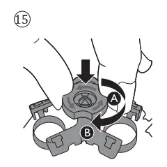 - The holder (B) back into the shaving unit, the clockwise rotation of the locking device (A). (Figure 15)