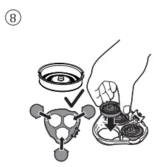 - Put the shaving heads back into the shaving unit.(Figure 7)