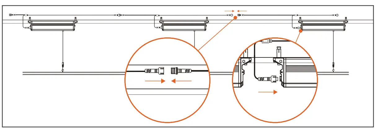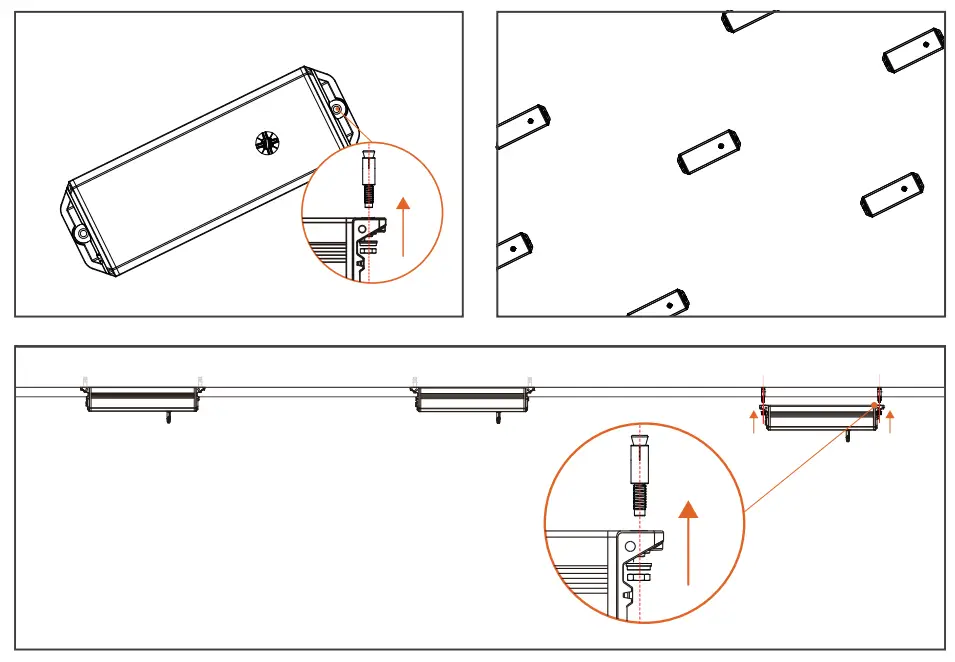 Caution: Monitor all lifters’ operation. If any of the lifter(s) stopped working, let go of the ascend/descend button immediately and check and troubleshoot the lifter(s) error status. - Install grow light into the support system (e.g. unistrut