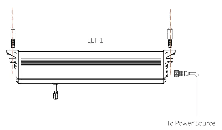 The LLT-1 module can be mounted directly to a ceiling joist, unistrut or other secured structures using appropriate fasteners to secure the LLT-1.