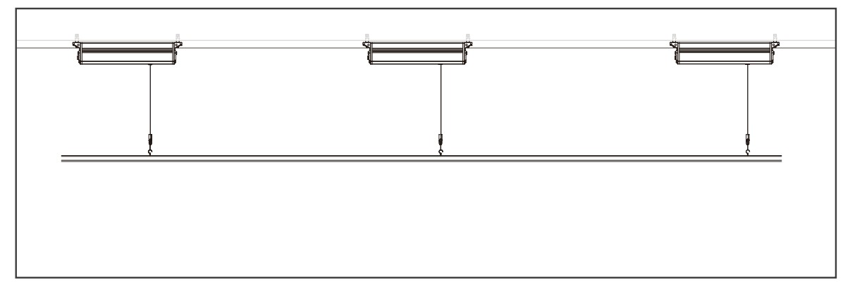 *Caution: Users must address potential situations shown below before continuing the setup procedures. If one or more of the lifters are not all level, the lights may be lifted unevenly and/ or some lifters will not be bearing any weight. Manually use the up down buttons on each LLT-1 so that equal weight will be supported by each lifter.Notice the middle steel cable is lose and not carrying any weight.