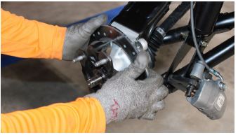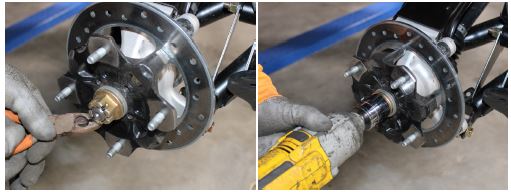 - Install wheel hub and rotor assembly and secure using 30mm socket with supplied axle nut and washer.