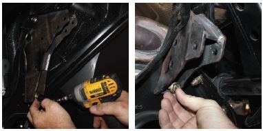 - Using a 15mm socket and wrench install the lower control arm using factory hardware.