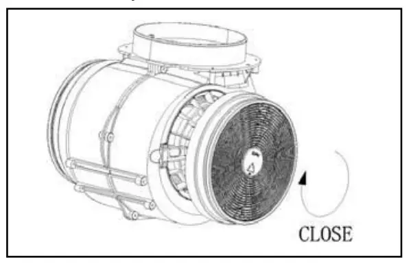 - Fix the one-way-valve to the air outlet of the cooker hood. Then, attach the exhaust pipe to the one-way-valve as shown below.