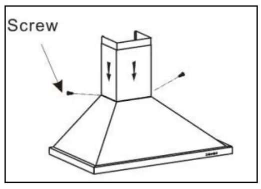 Fix the lower chimney with the hood with 2 screws ST4x8mm.