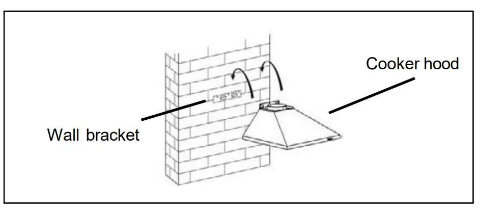 - Lift up the cooker hood and hang it onto the wall bracket hooks.