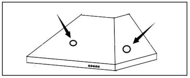 - After hanging the hood on the bracket , remove the Alu Filters , mark 2 holes inside the hood for safety screws .After marking , remove
