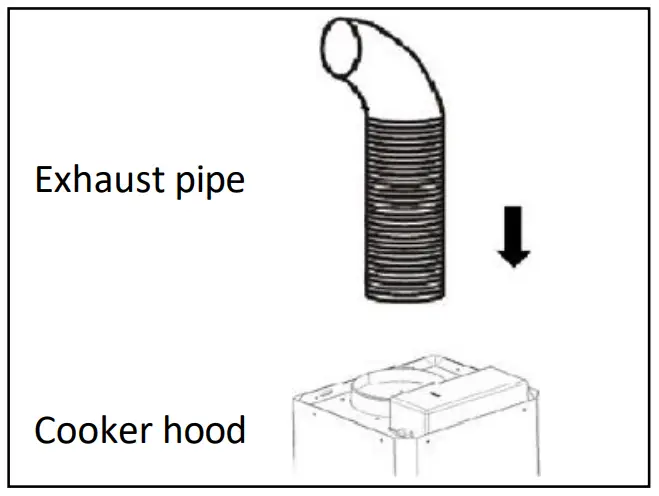 - a. If you have an outlet to the outside, your cooker hood can be connected as per the below picture by means of an extraction duct with an interior diameter of 150mm.