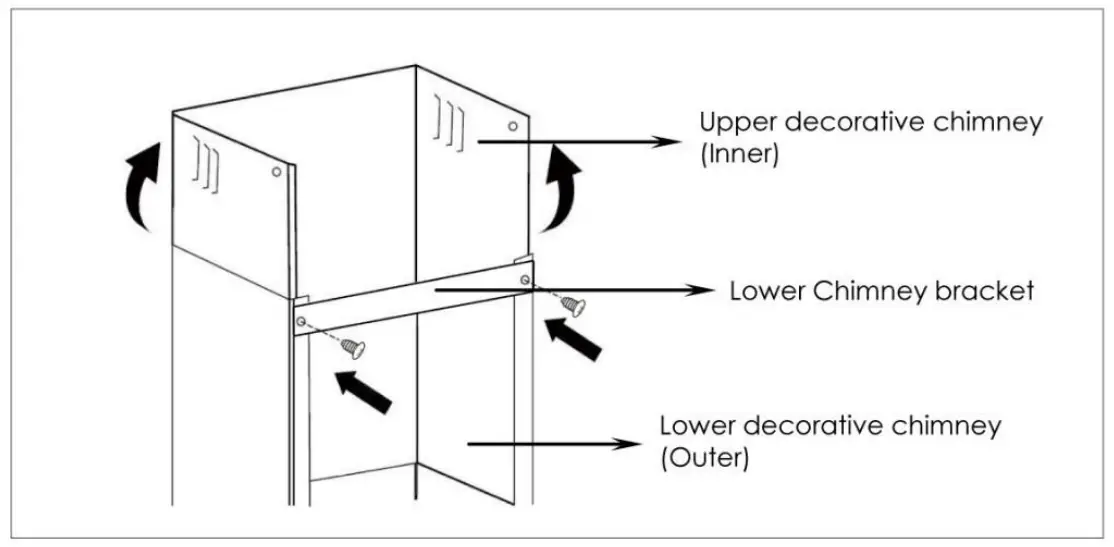 Do not fasten screws too much, make sure upper chimney can be telescopically adjusted after assembled.