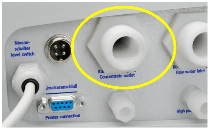 - Concentrate Outlet is located in the front of the unit, below the blue cover