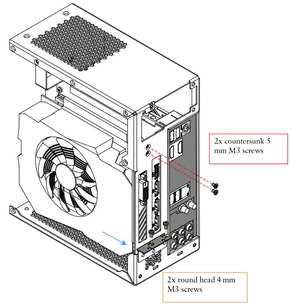 - Install the IO shield and install that subassembly back into the main body of the case with the top PSU holder attached