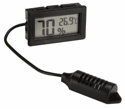 Features: easy panel mounting, large and clear display, lowbattery indication, high-grade ABS case, wire (1 m) and probe.
