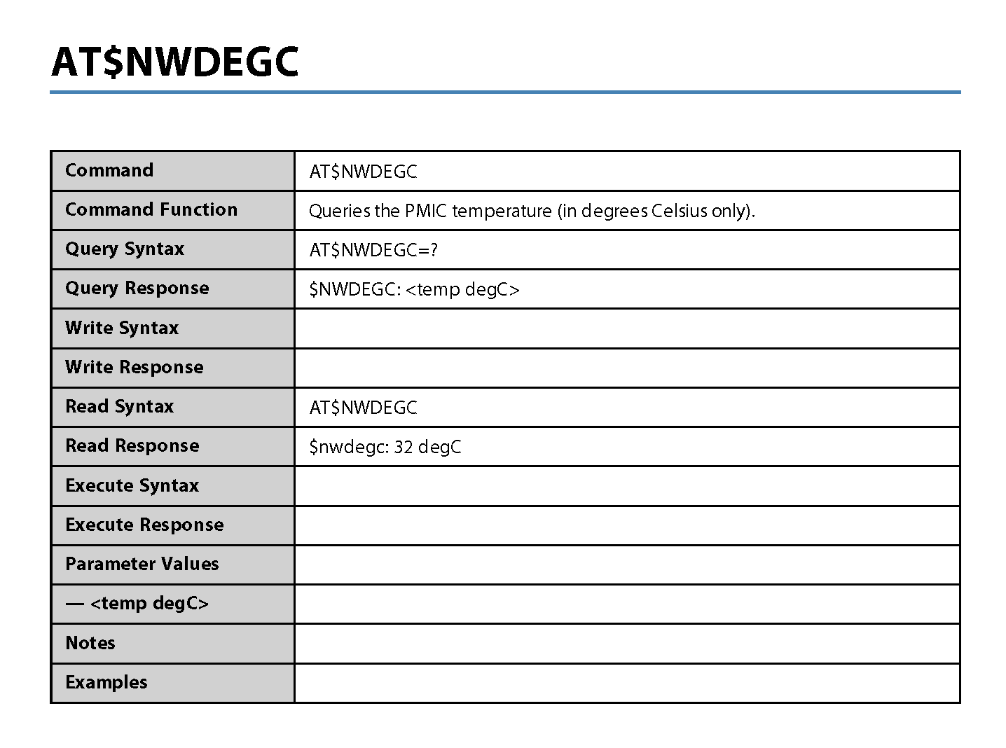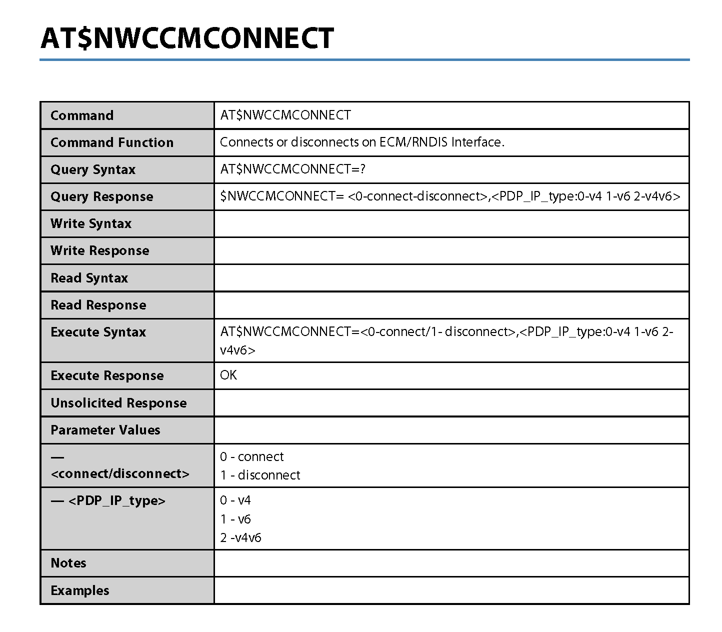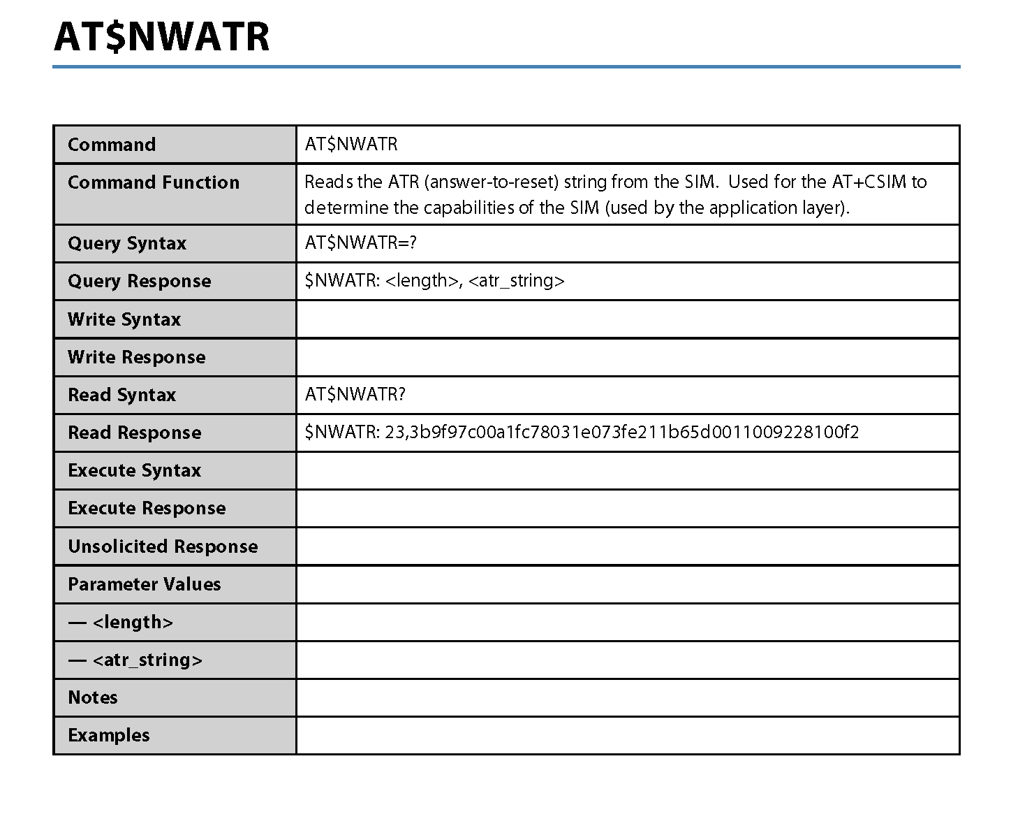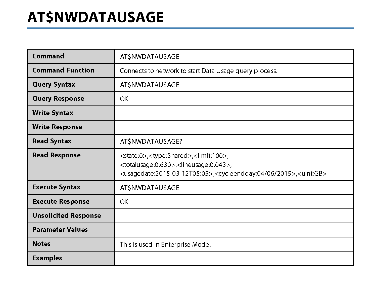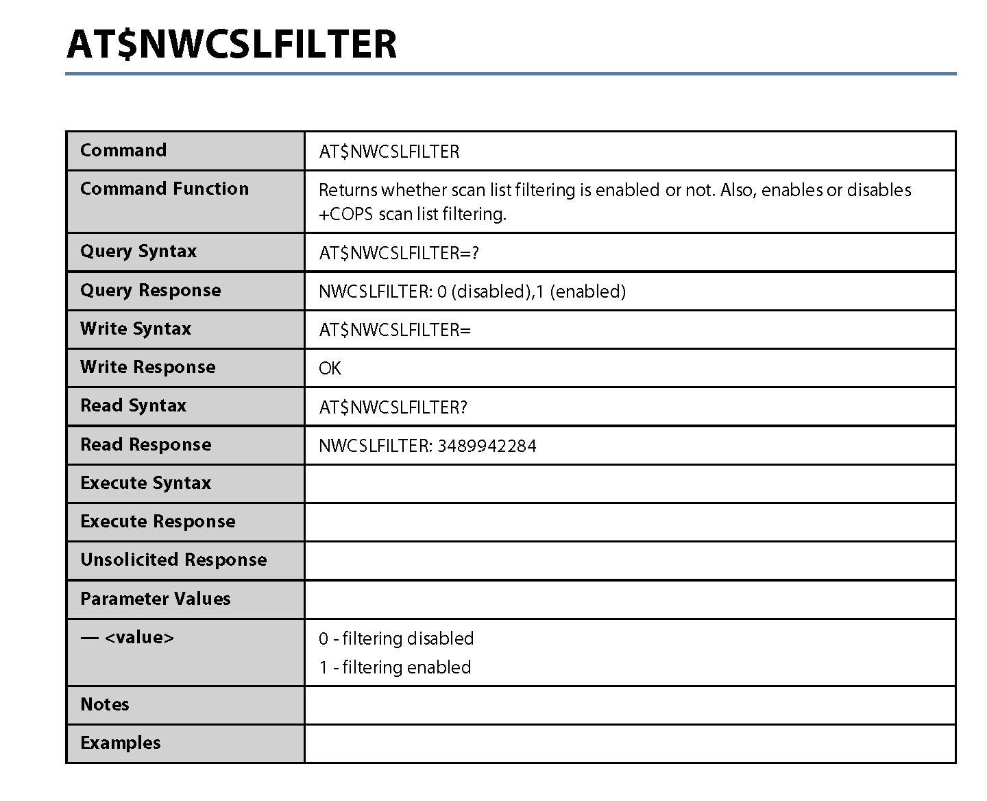 NOTE: Where applicable, the <value> responses provided for the READ and EXECUTE formats are modem default values. All efforts will be made by Novatel Wireless. to keep these values current in the documentation but will not be responsible for any differences that may occur as a result subsequent software builds and version enhancements.