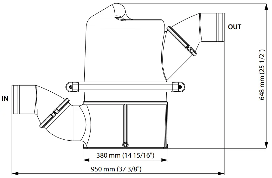 - The highest point in the exhaust pipe should not be more than 150 cm (60”) above the underside of the waterlock.