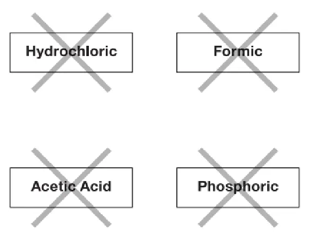 - Phosphoric acid is also restricted as it can cause damage to the finish.