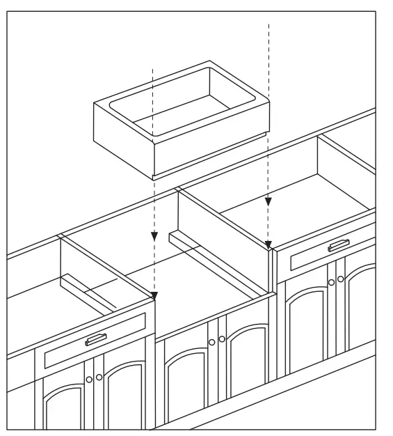 - Allow clearance for water supply lines and drains or garbage disposals, as necessary.