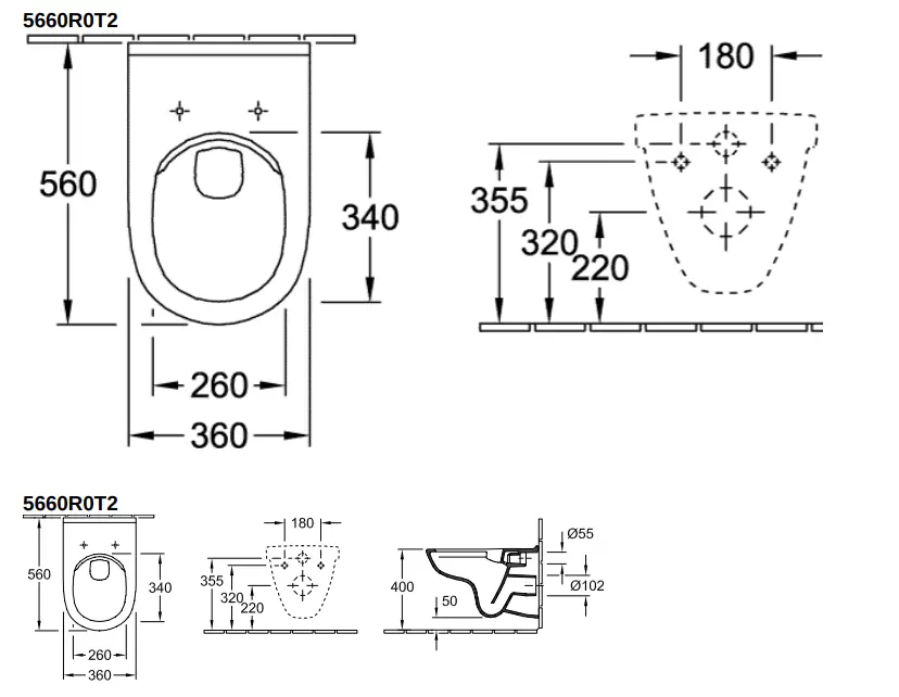 Villeroy Boch 5660R0T2 O.novo Washdown Toilet
