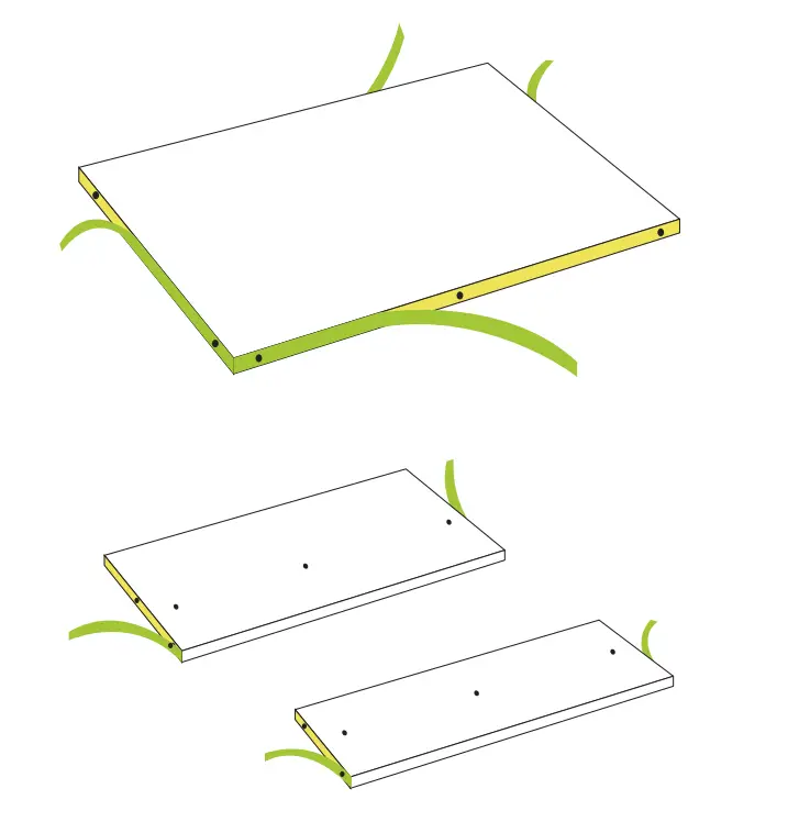 - Carefully remove the protective layer on Front zBoard, Back zBoard and Bottom zBoard (making sure not to remove the 3M adhesive shown in yellow).