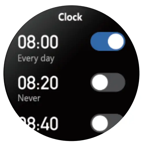After the watch is connected to the APP, you can set a single alarm clock, a circular alarm clock and a maximum of five alarm clocks.