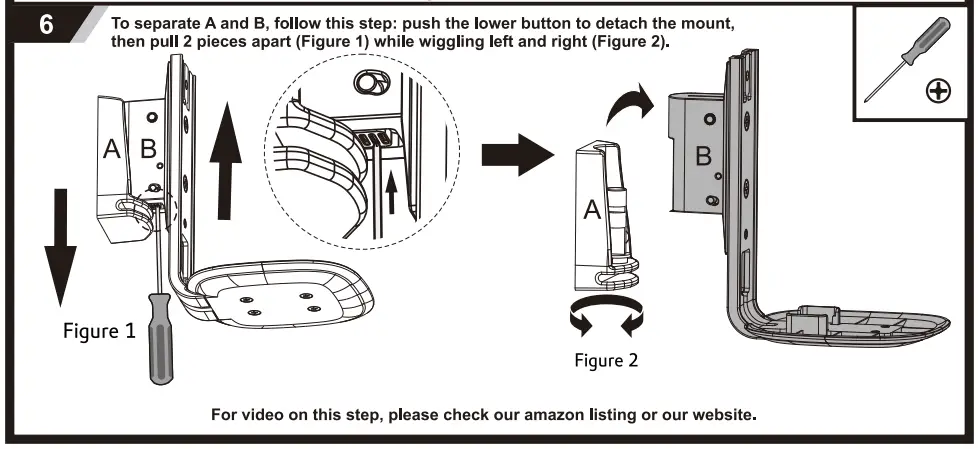 • To Separate A and B , follow this step: push the lower button to detach the mount, then pull 2 places apart (Figure 1) while wiggling left and right (Figure 2).