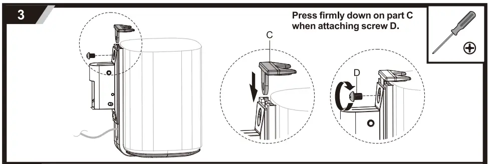 • Press firmly down on part C when attaching screw D.