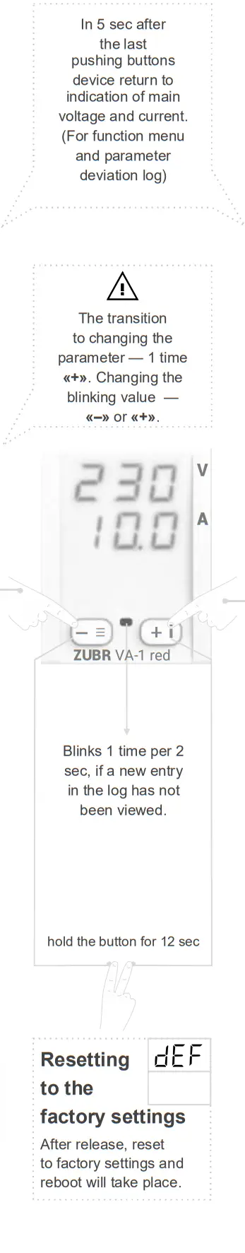 Voltammeter ZUBR VА-1 (hereinafter referred to as the device) is designed for measurement and control in a single-phase circuit of: voltage, current, power (active, reactive or full), cos φ allows you to estimate the power coefficient in your electrical grid).