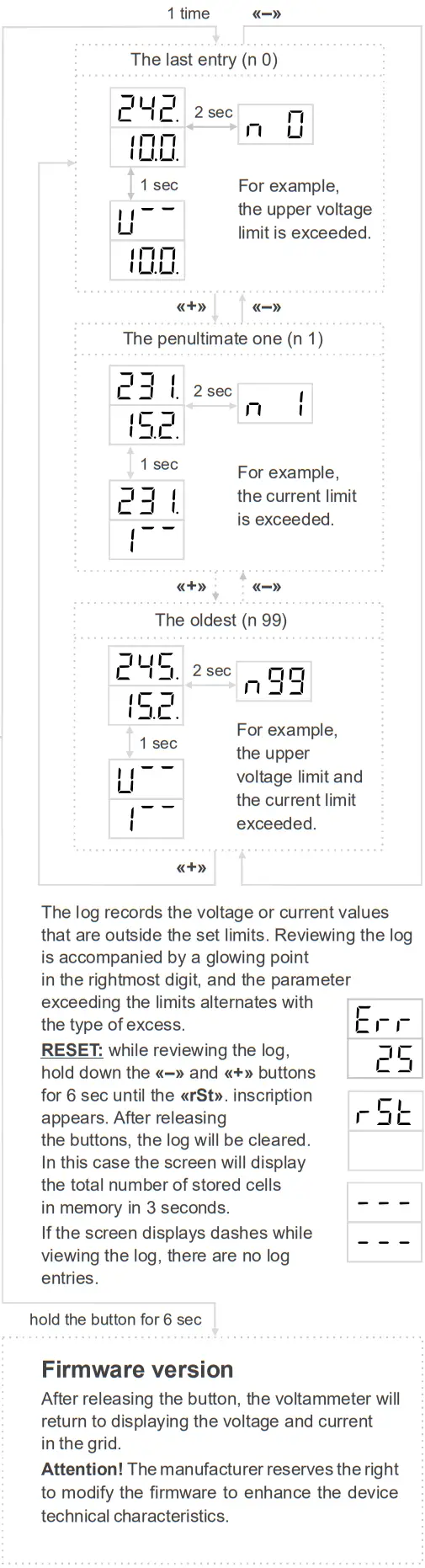 The log for 100 cells allows you to keep statistics and save the maximum / minimum effective voltage and maximum current in the non-volatile memory.